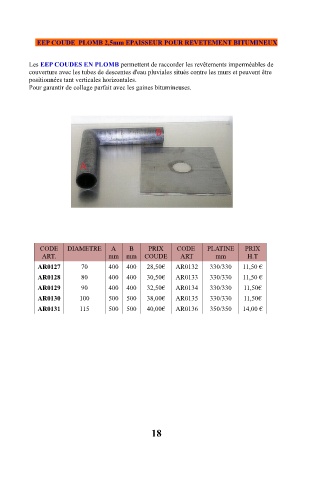 Les EEP COUDES EN PLOMB permettent de raccorder les revêtements imperméables de