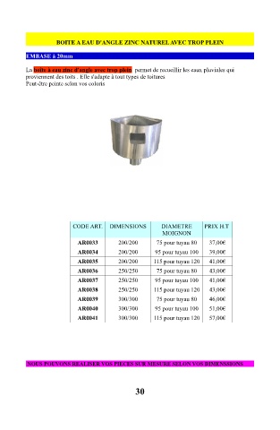 La boîte à eau zinc d'angle avec trop plein  permet de recueillir les eaux pluviales qui