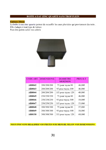 La boîte à eau zinc quartz permet de recueillir les eaux pluviales qui proviennent des toits .