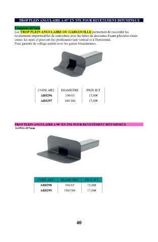 Les TROP PLEIN ANGULAIRE OU GARGOUILLE permettent de raccorder les