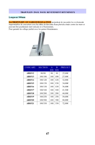 TROP PLEIN  INOX  POUR  REVETEMENT BITUMINEUX