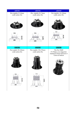 Plot réglable 90-100mm Plot réglable 150-270mm Tête fixe NMX