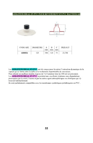 AERATEUR IDEAL EN PVC POUR REVETEMENT EN PVC HAUTEUR 160
