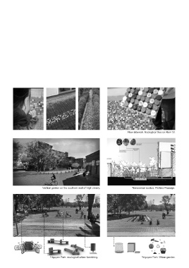 New sidewalk. Ecological tiles on Alem St. Vertical garden on the southern wall of Vigil Library. Transversal section. Perkins Passage. Yrigoyen Park. ecological urban furnishing. Yrigoyen Park. Urban garden.