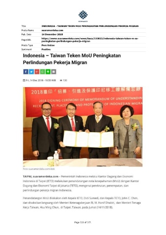 Title INDONESIA - TAIWAN TEKEN MOU PENINGKATAN PERLINDUNGAN PEKERJA MIGRAN