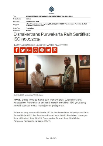 Title DISNAKERTRANS PURWAKARTA RAIH SERTIFIKAT ISO 9001:2015