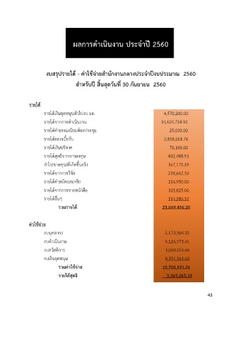 งบสรุปรายไดa - คOาใชaจOายสำนักงานกลางประจำปnงบประมาณ 2560