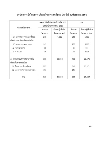 สรุปผลการจัดโครงการบริการวิชาการแกOสังคม ประจำปnงบประมาณ 2560
