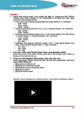 1. Hanya pada kalimat positif, untuk subject "He, She, It", penggunaan kata kerjanya