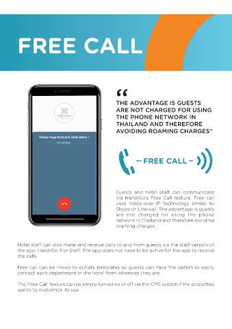The ‘Free Call’ feature can be simply turned on or o via the CMS system if the properties