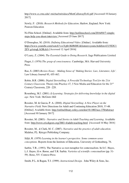 Rossiter, M., & Clark, M. C. (2007). Narrative and the practice of adult education.
