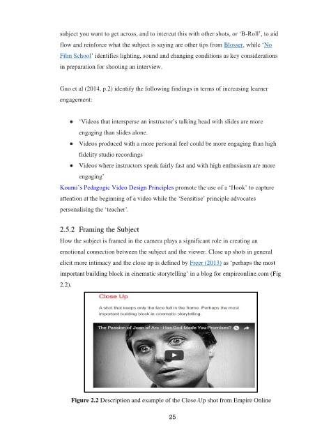 elicit more intimacy and the close up is defined by Freer (2013) as ‘perhaps the most