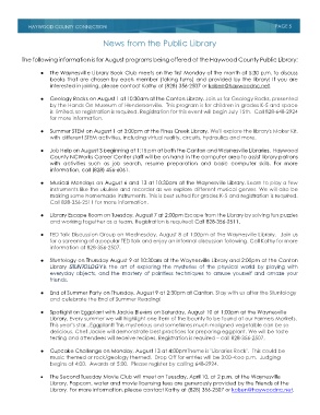 The following information is for August programs being offered at the Haywood County Public Library: