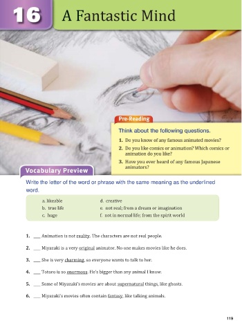 5. ____ Some of Miyazaki’s movies are about supernatural things, like ghosts.