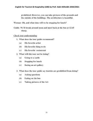 English for Tourism & Hospitality (108) by Prof. Adel AlSheikh 2020/2021