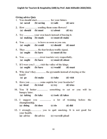English for Tourism & Hospitality (108) by Prof. Adel AlSheikh 2020/2021
