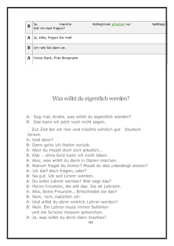 B: Meine Freundin, die will das. Sie ist Lehrerin.