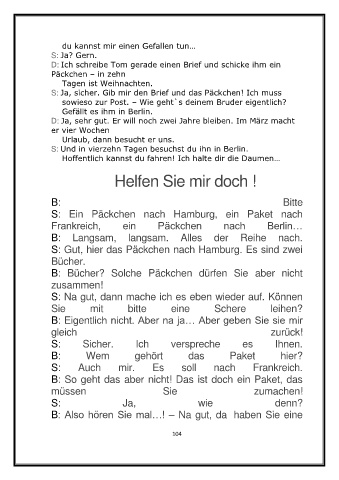 S: Ja, sicher. Gib mir den Brief und das Päckchen! Ich muss