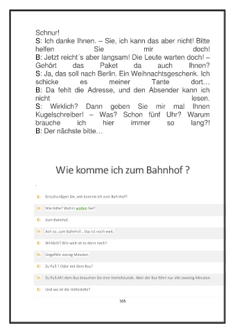 D: Ach so, zum Bahnhof… Das ist noch weit.