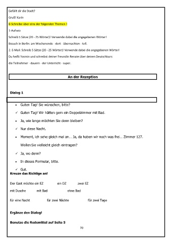 2. E-Mail: Schreib 5 Sätze (20 - 25 Wörter)! Verwende dabei die angegebenen Wörter!