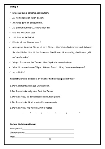 5. Der Gast fragt, wie viel das Zimmer kostet.