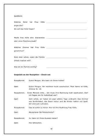 Rezeptionist: Das ist schön zu hören. Hier ist Ihre Rechnung Frau Kölle.