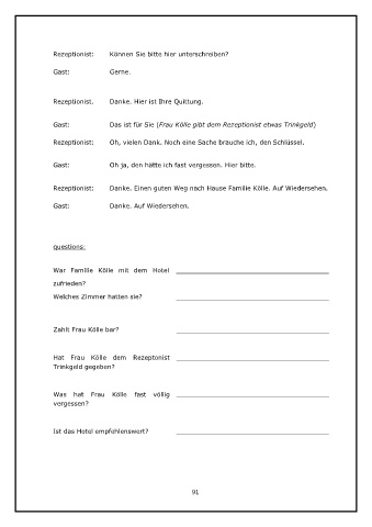 Rezeptionist: Oh, vielen Dank. Noch eine Sache brauche ich, den Schlüssel.