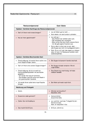 Speisen / Getränke Nachfrage des Restaurantpersonals