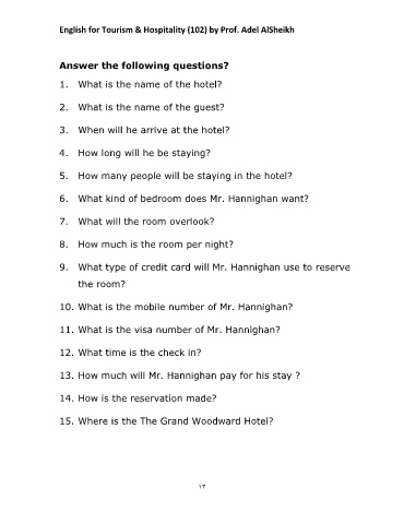 English for Tourism & Hospitality (102) by Prof. Adel AlSheikh