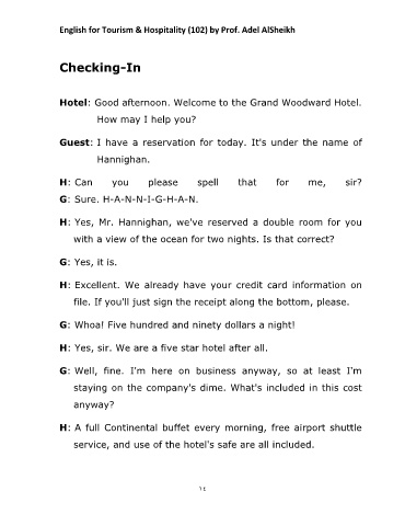 English for Tourism & Hospitality (102) by Prof. Adel AlSheikh