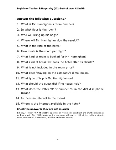 English for Tourism & Hospitality (102) by Prof. Adel AlSheikh