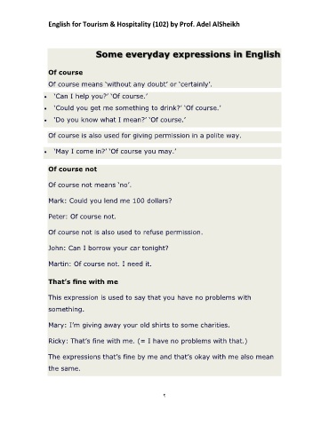 English for Tourism & Hospitality (102) by Prof. Adel AlSheikh