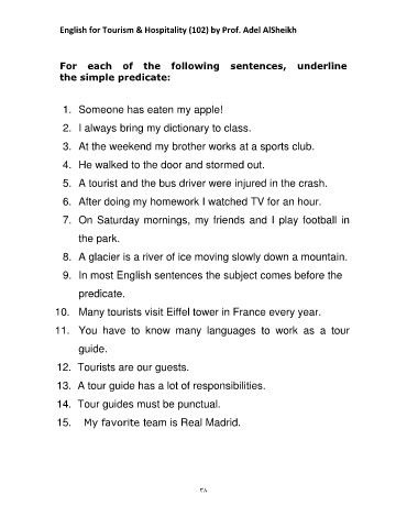 English for Tourism & Hospitality (102) by Prof. Adel AlSheikh