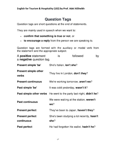English for Tourism & Hospitality (102) by Prof. Adel AlSheikh