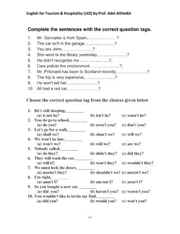 English for Tourism & Hospitality (102) by Prof. Adel AlSheikh
