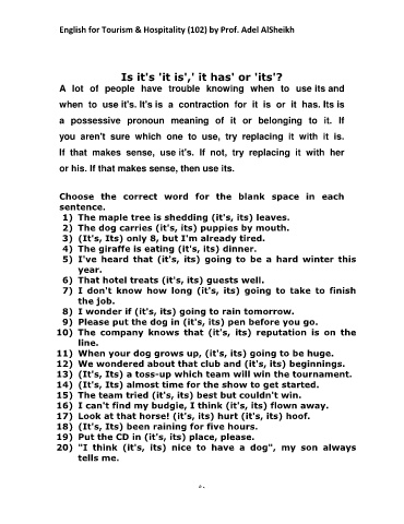 English for Tourism & Hospitality (102) by Prof. Adel AlSheikh