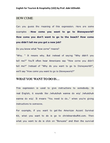 English for Tourism & Hospitality (102) by Prof. Adel AlSheikh
