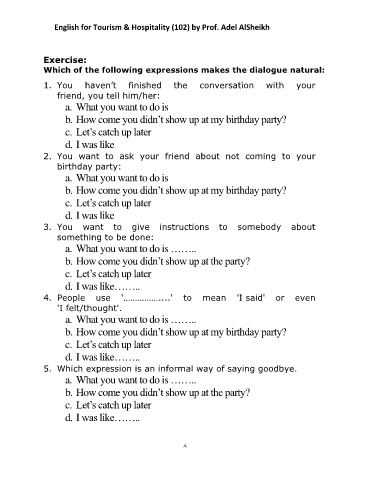 English for Tourism & Hospitality (102) by Prof. Adel AlSheikh