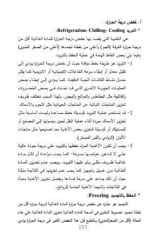 ﻫﻲ اﻟﻌﻠﻣﯾـﺔ اﻟﺗـﻲ ﯾﻘﺻـد ﺑﻬـﺎ ﺧﻔـض درﺟـﺔ اﻟﺣـ اررة ﻟﻠﻣـﺎدة اﻟﻐذاﺋﯾـﺔ أﻗـل ﻣـن