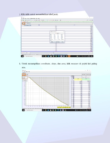 j. Klik table untuk menambahkan tabel jarak. k. Untuk menampilkan coordinate, slope, dan area, klik measure di pojok kiri paling atas.