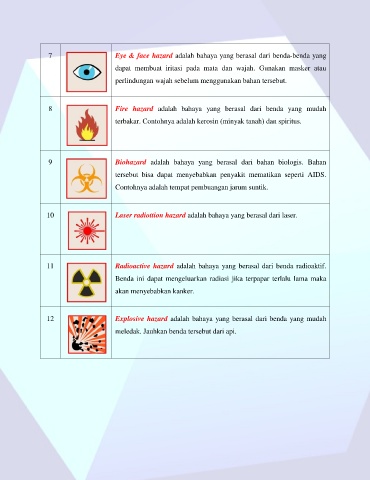 7 Eye & face hazard adalah bahaya yang berasal dari benda-benda yang