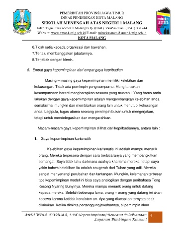 ARDI WIRA KUSUMA, S.Pd Kepemimpinan| Rencana Pelaksanaan 4