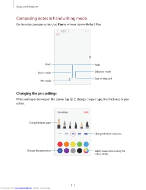 When writing or drawing on the screen, tap to change the pen type, line thickness, or pen