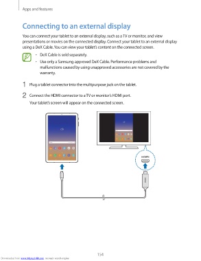 presentations or movies on the connected display. Connect your tablet to an external display