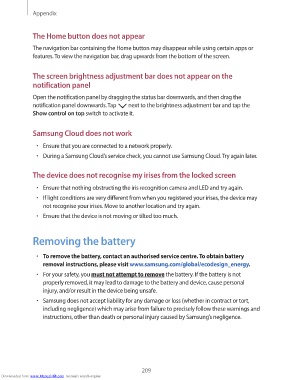 • To remove the battery, contact an authorised service centre. To obtain battery