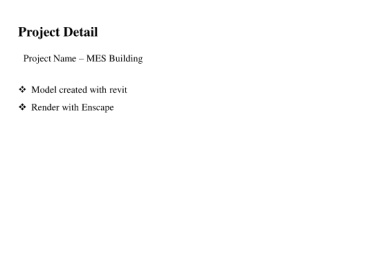 Project Detail Project Name – MES Building ❖ Model created with revit ❖ Render with Enscape