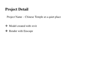 Project Detail Project Name – Chinese Temple at a quiet place ❖ Model created with revit ❖ Render with Enscape