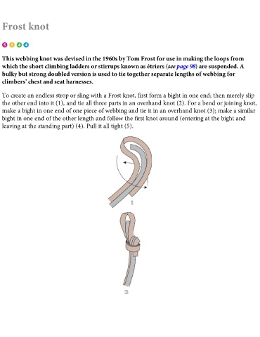 This webbing knot was devised in the 1960s by Tom Frost for use in making the loops from