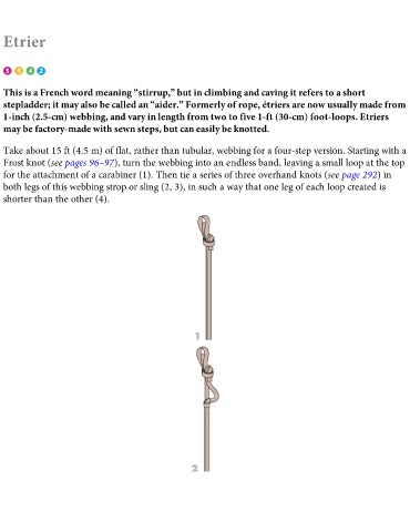 1-inch (2.5-cm) webbing, and vary in length from two to five 1-ft (30-cm) foot-loops. Etriers
