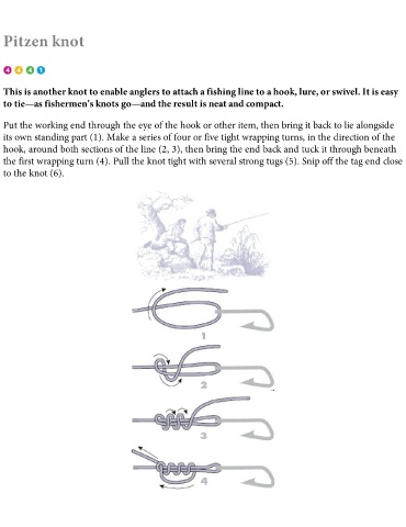 hook, around both sections of the line (2, 3), then bring the end back and tuck it through beneath